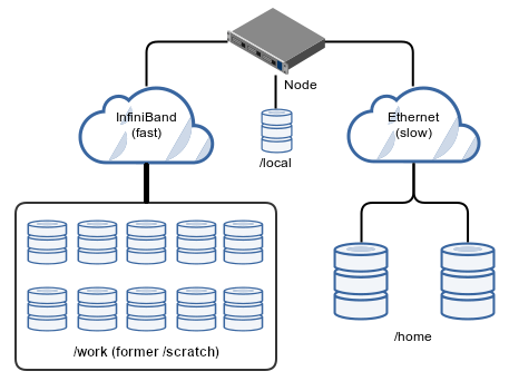 /work/fuchs/<group>/<user>(parallel file system PanFS, fast), - the non-shared local storage (i.e. unique on each compute node) under